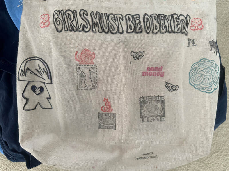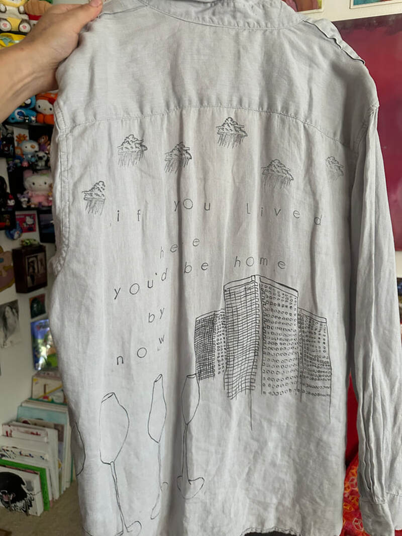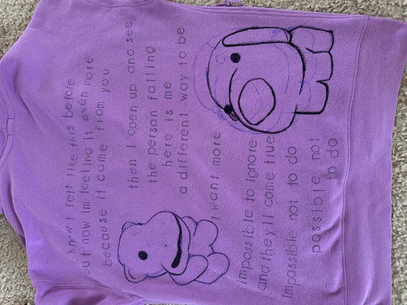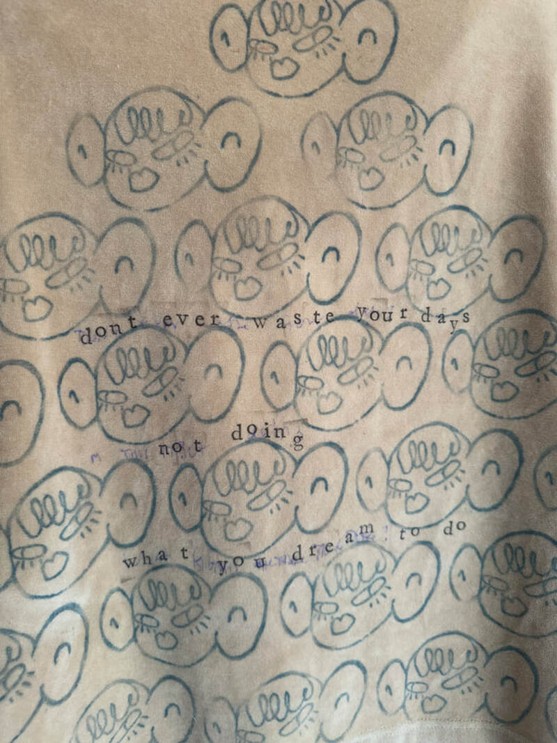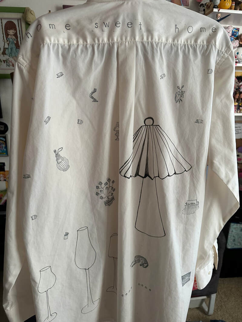 I worked on a lot of apparel this week! Some stamping and some doodles. There’s always so much more that I’d like to get done. I’ve been hoping to spray paint some pieces too and just haven’t had the chance. I’m happy with what I managed though J I also altered a few pairs of pants to size and will hopefully work on those too? Not sure yet