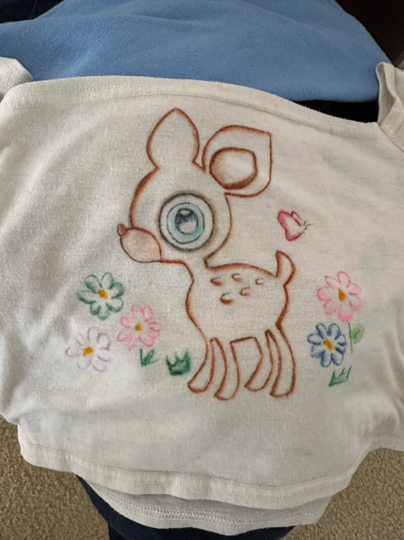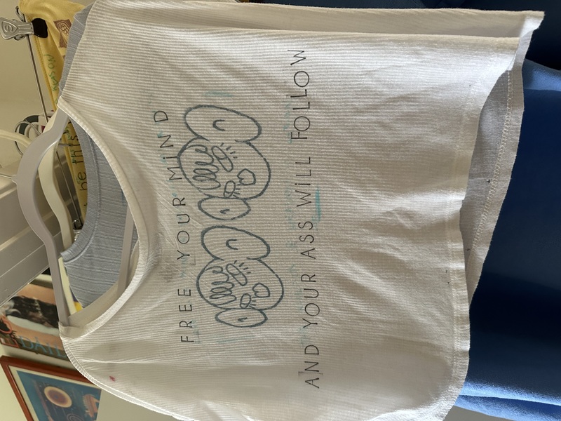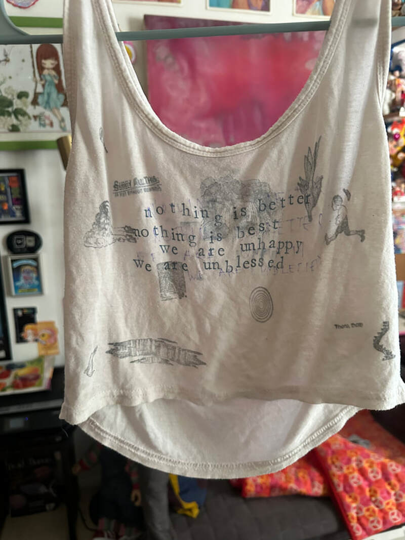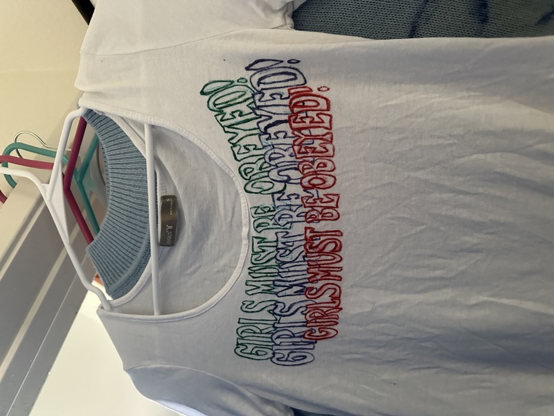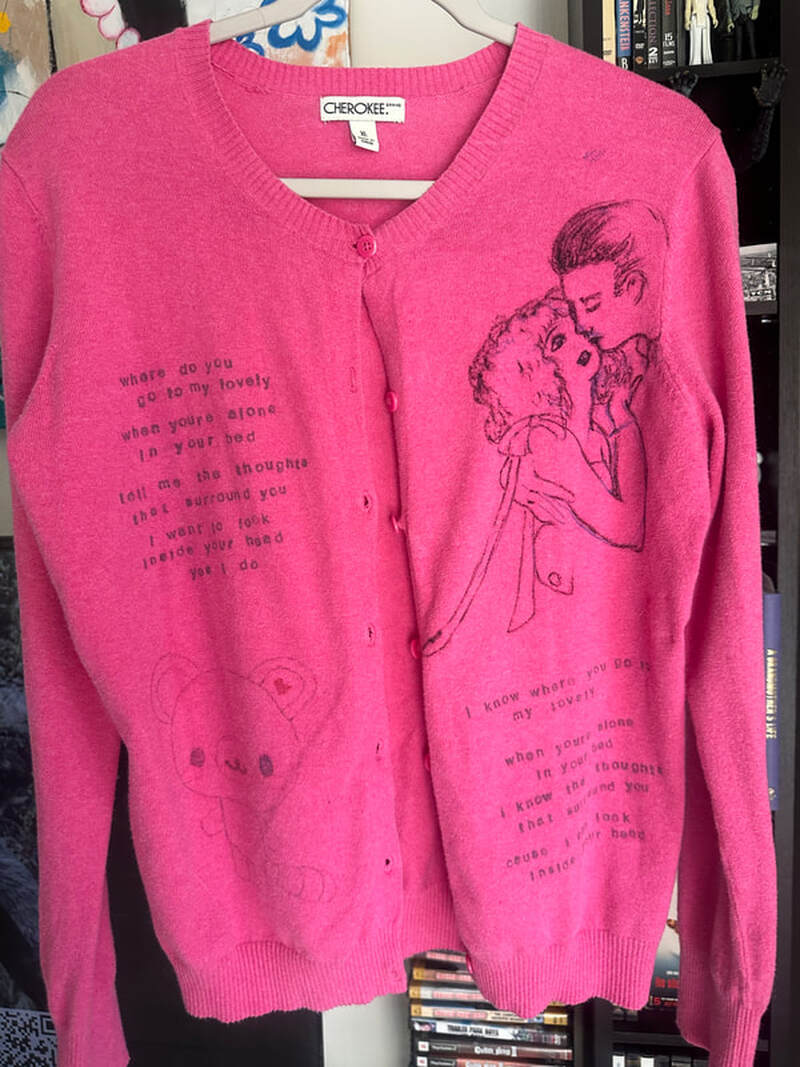 I worked on a lot of apparel this week! Some stamping and some doodles. There’s always so much more that I’d like to get done. I’ve been hoping to spray paint some pieces too and just haven’t had the chance. I’m happy with what I managed though J I also altered a few pairs of pants to size and will hopefully work on those too? Not sure yet