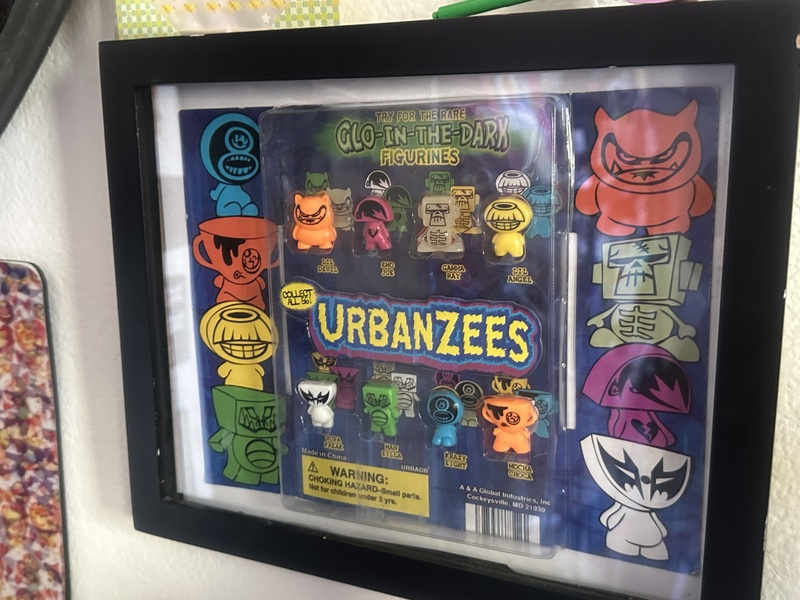 This is my framed display of Urbanzees quarter machine toys :-) It was gifted to me last christmas by my lovely partner ♡ (my out- of-box collection is shown to the right- the display I'm working on for them isn't quite done x-x)