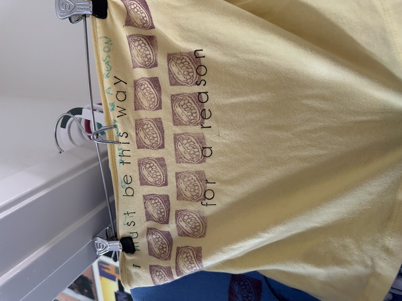 I worked on a lot of apparel this week! Some stamping and some doodles. There’s always so much more that I’d like to get done. I’ve been hoping to spray paint some pieces too and just haven’t had the chance. I’m happy with what I managed though J I also altered a few pairs of pants to size and will hopefully work on those too? Not sure yet