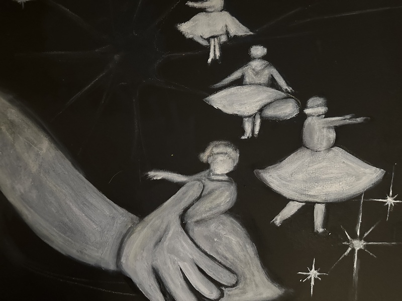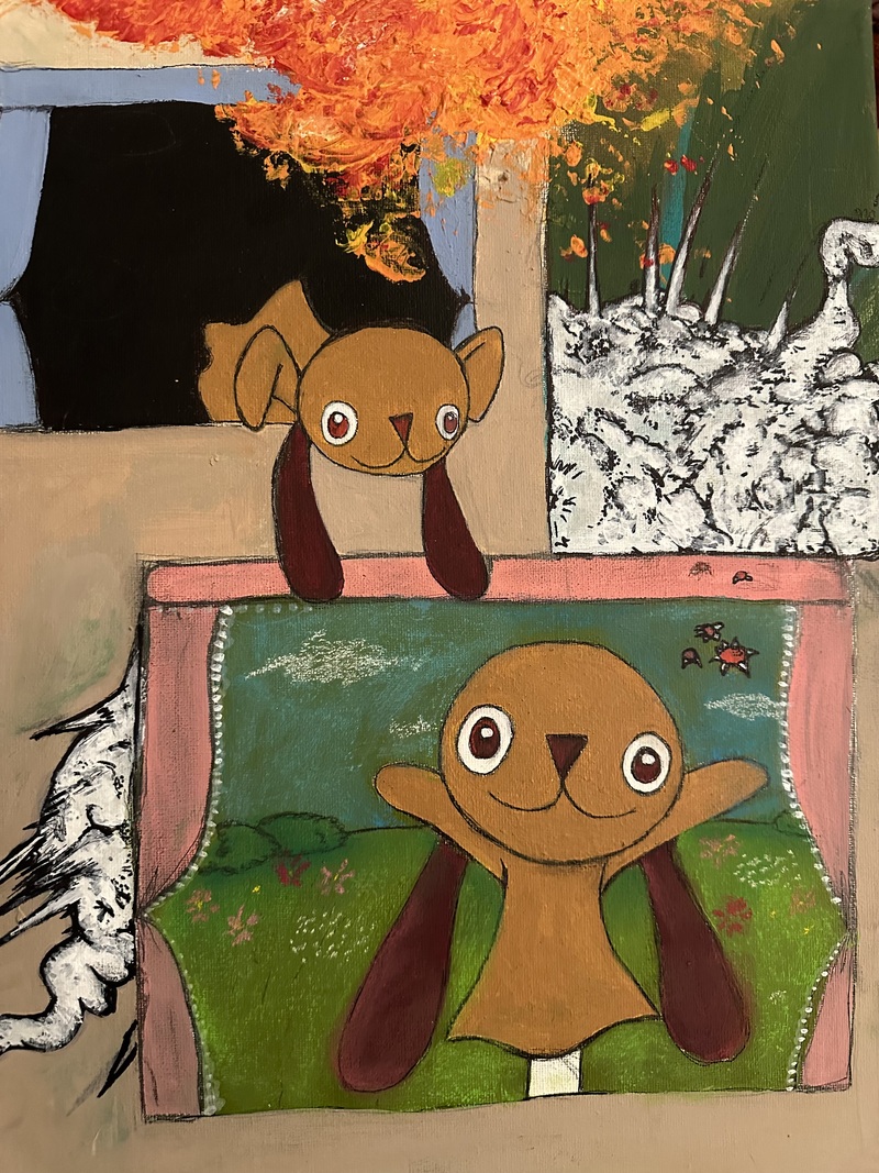 I finished “Semi-real” last week. I want to call it done, but did notice that after setting the chalk pastel with spray varnish, the blue in the sky was overtaken by the green underpainting I had done. The sky and grass now kind of look like the same shade of green, so I’ll probably have to go back in with more chalk now that it’s dry. Other than that, I’ll call it done.