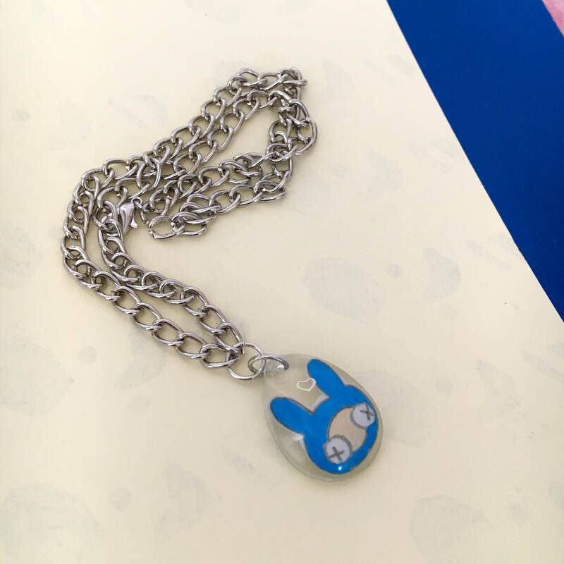 blue bunny resin necklace