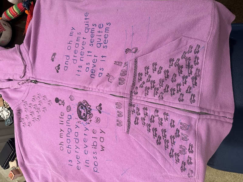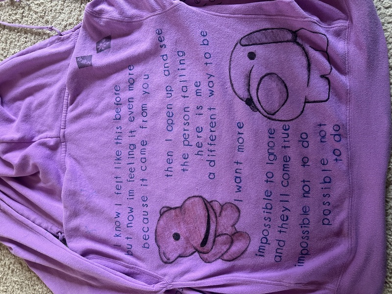 I'll probably keep peppering the purple hoodie with stamps and lyrics. I kind of want them both to be covered with odds and ends <3